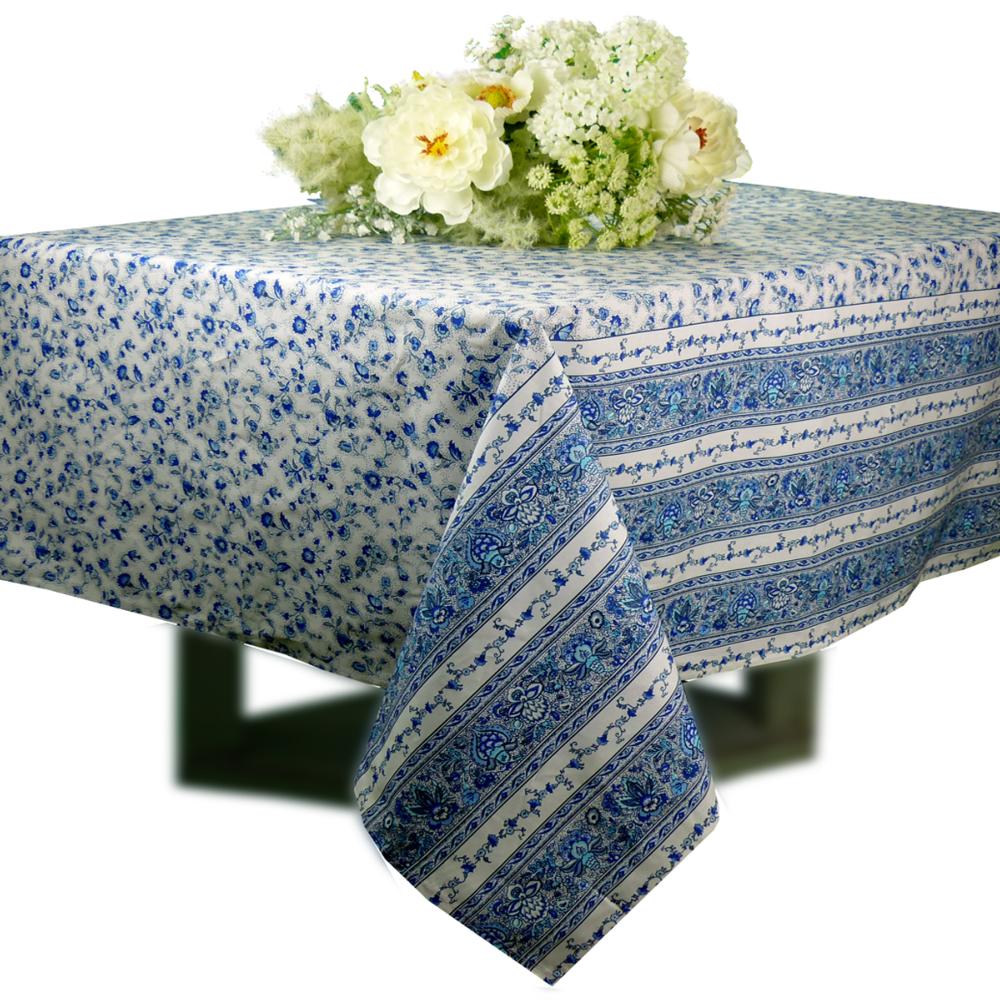 Jolie Nappe Rectangulaire Enduite 155x250 cm Blanc/Bleu motif "Champêtre".